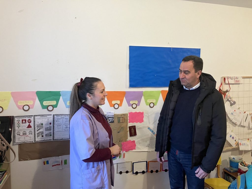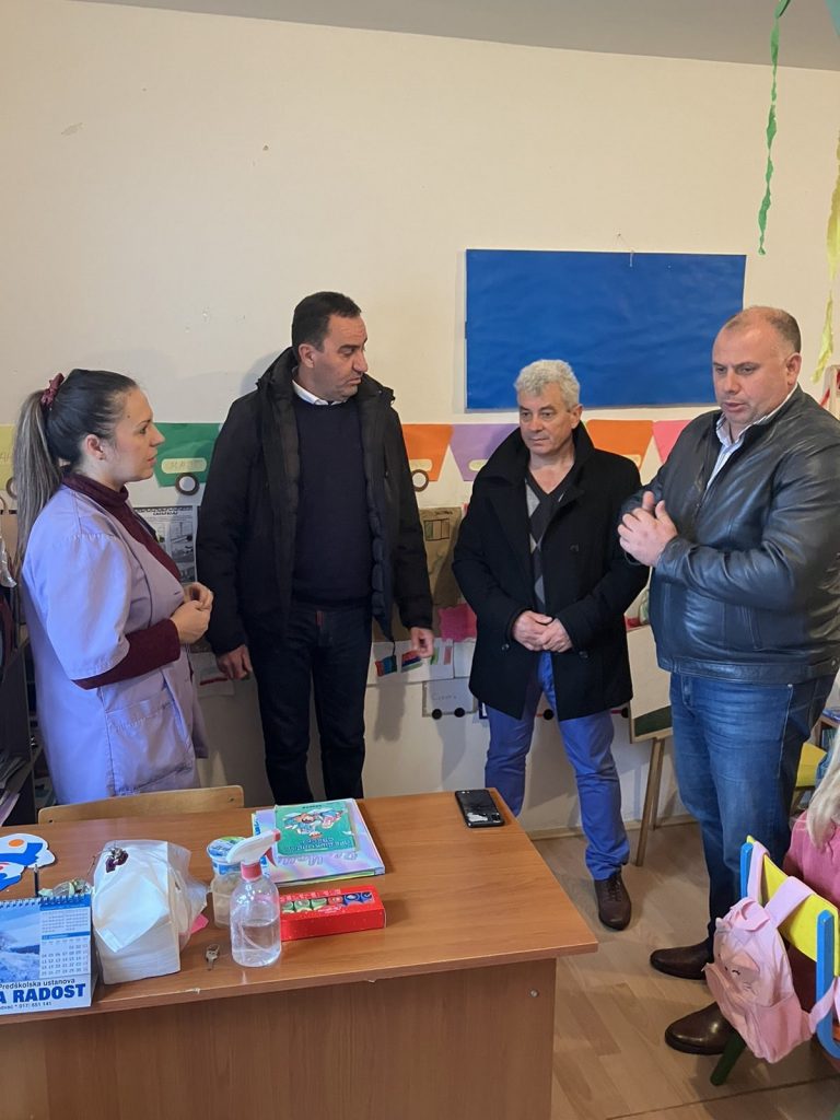 Bujanovac, 08.decembar 2023. (Bupress) – Direktor Službe Koordinacionog tela Vlade Republike Srbije za opštine Preševo, Bujanovac i Medvedja Nenad Mitrović, direktor OŠ „Vuk Stefanović Karadžić“ u Levosoju Aleksandar Milošević i direktor PU „Naša radost“ u Bujanovcu Milovan Aleksić, obišli su danas osnovne škole u Spančevcu u okviru koje se nalaze i područna predškolska grupa vrtića „Naša radost“ u Bujanovcu, i školu u „Bora Stanković“ u selu Klenike i područno odeljenje vrtića „Naša radost“ u kojima je u poslednjem periodu izvršeno detaljno uredjenje i renoviranje. Uradjena je prilazna staza do ulaza, uredjeno dvorište, uvedeno etažno grejanje na pelet i nabavljen novi nameštaj.