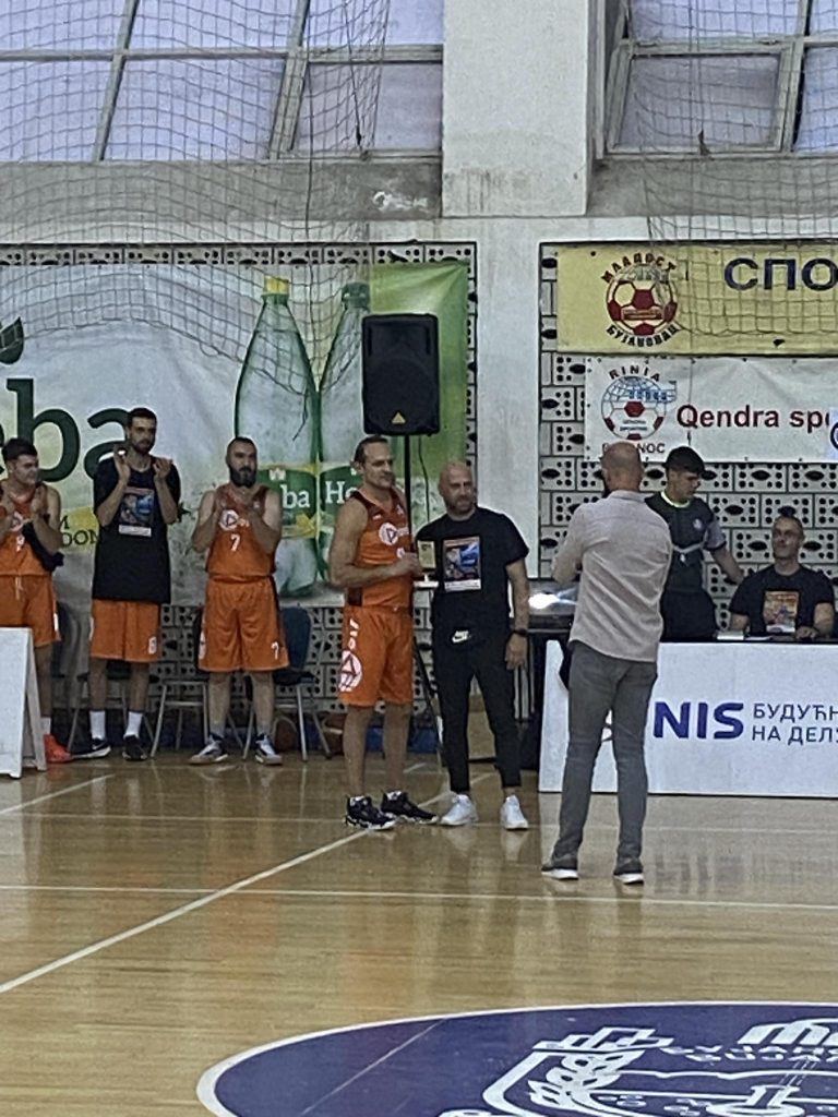 Bujanovac, 11.05.2024. (Bupress) – Humanitarna utakmica izmedju domaćina, bujanovačkog Plej 017 i Skopskog Vardara odigrana je sinoć pred polupraznim tribinama, i ako danima unazad najavljivana, jer razlog je više nego ljudski i human. No, za one prisutne ljubitelje košarke, i domaćini i gosti su priredili pravi spektakl. Pre početka utakmice, intonirana je himna obe države, Srbije i Severne Makedonije. Za domaću ekipu su nastupili pored standardnih prvotimaca, bivši igrač Danilo Dabetić, vranjanci Dimitrije Janković koji košarkašku karijeru gradi u Italiji i Darko Trajković prvotimac Ratnika iz Niša i kao najzvučnije ime Igor Rakočević, bivši jugoslovenski reprezentativac, prvotimac Crvene zvezde i mnogih evropskih klubova, koji je, iako 46-togodišnjak igrom i minutažom parirao svojim mnogo mladjim kolegama. Za ekipu Vardara pored standardnih prvotimaca, trebao je da nastupi i Pero Antić, bivši makedonski reprezentativac i NBA igrač, ali je opravdano izostao.